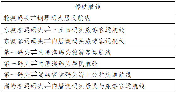 受海上浓雾影响,海上能见度不符合通航要求,自2026年3月2日6:40起厦鼓航线全线停航,具体航线如下: