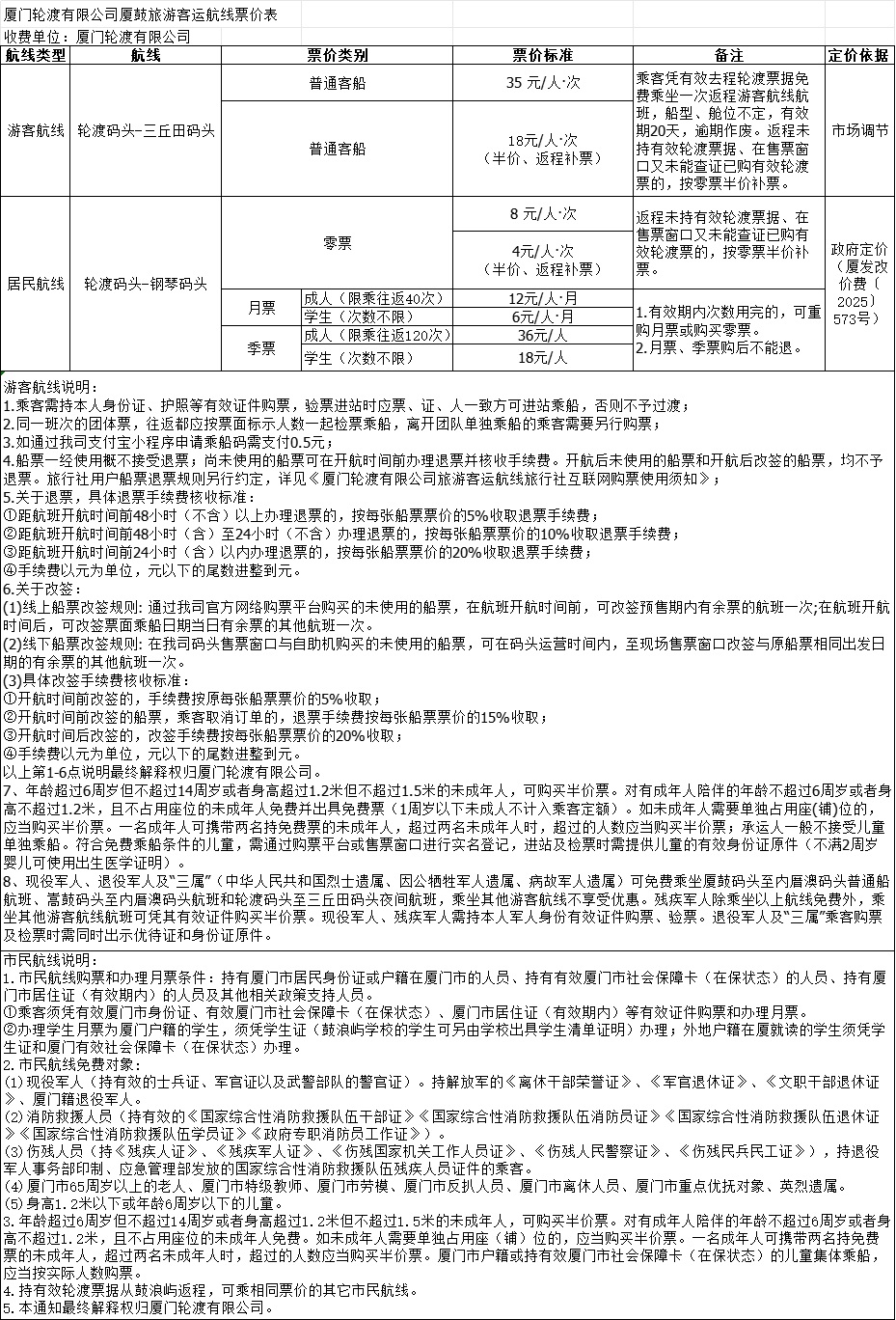 厦门轮渡码头往返鼓浪屿钢琴码头(居民专线)